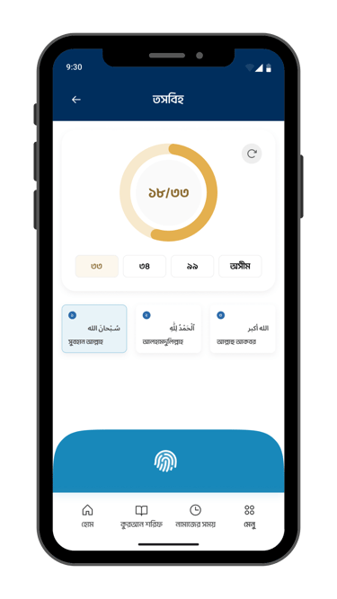 কুরআন তেলাওয়াত, নামাজ ট্র্যাকার, রোজা ট্র্যাকার, তাসবিহ, জিকির, দোয়া, সহ আরও অনেক কিছু